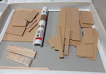 木製パーツです、製作前に鉛筆で番号等書き込みました |