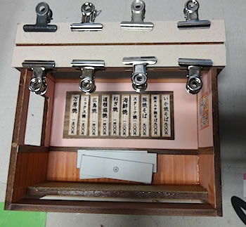 ![]() ベースはダイソーの木製小物入れを使用 LEDの電池を収めるスペース確保です |