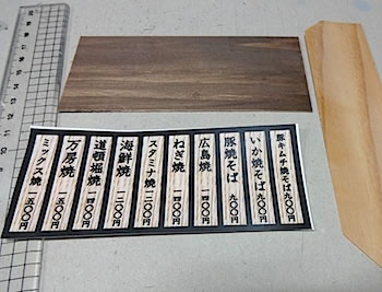 メニューのコピーを薄い木の板に接着します |